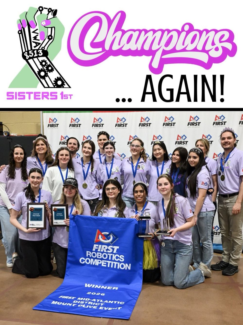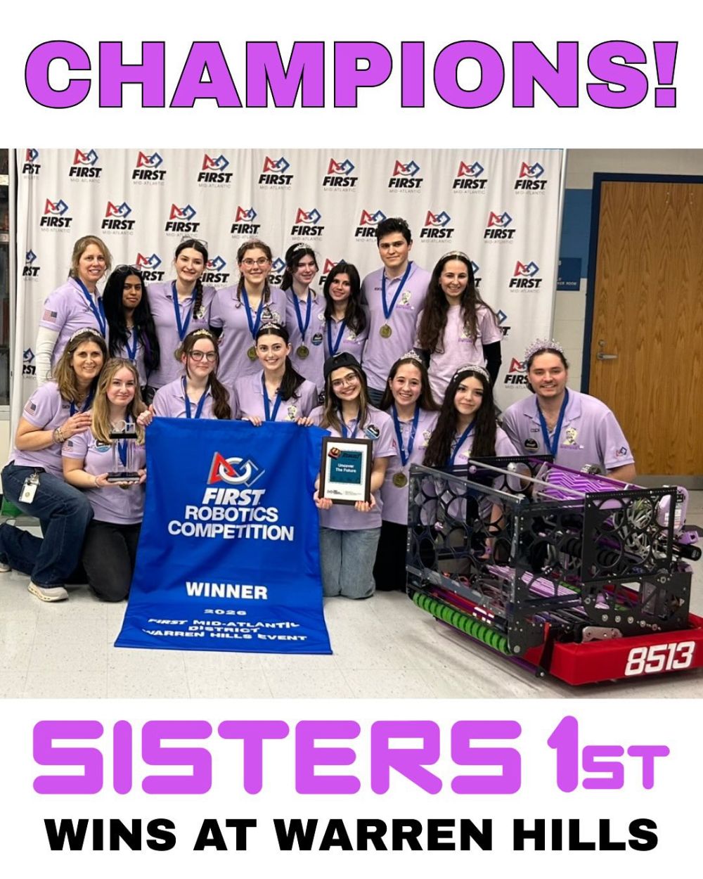 Congratulations to the Villa Walsh Academy Sisters 1st Robotics Team (FRC Team 8513) for capturing the Mount Olive District Event Championship this past weekend, continuing an already remarkable season!
